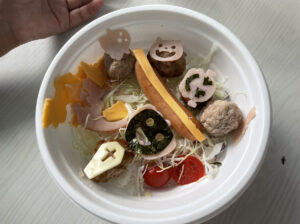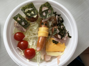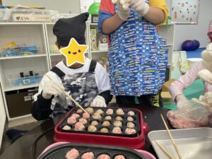 野菜を切るチームや、ハムやチーズを型抜きするチーム、そしてタコ焼き機で焼くチームなど自分の好きな係に分かれて作業しました😊🍅