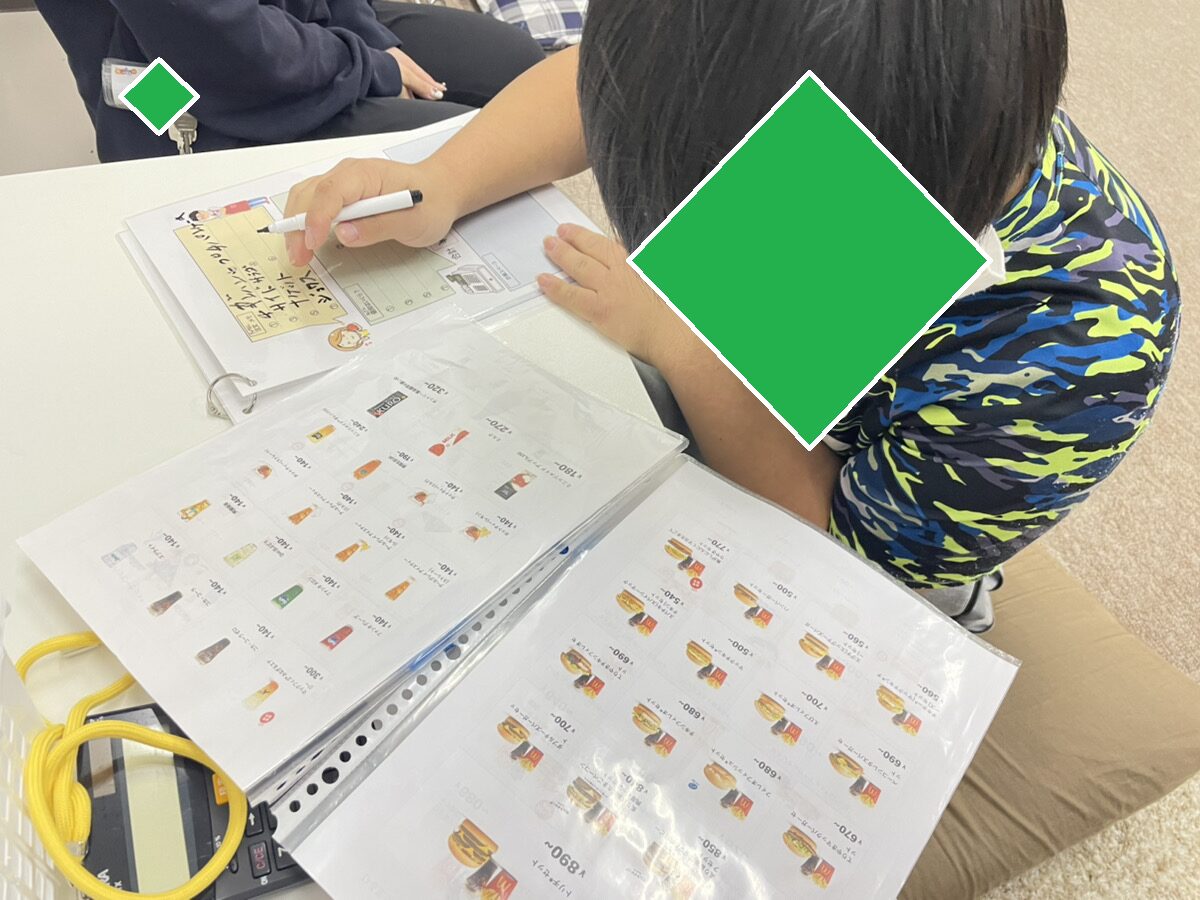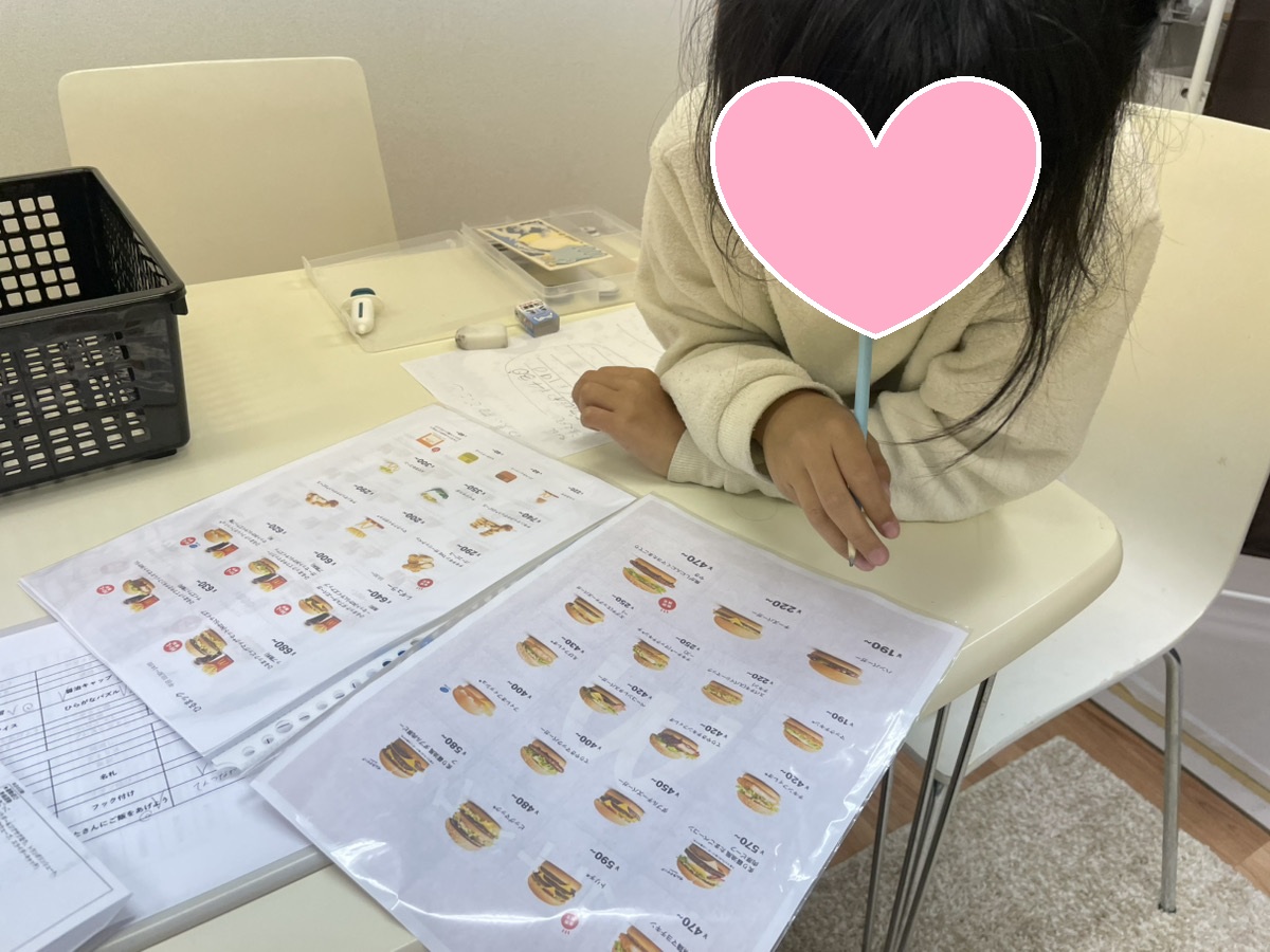 どこにあるメニューかな?こんな食べ物なんだ!○○円なんだ!いろいろな発見をしながら、金額を記入していきます♪なんだかお腹が空いてくるね😚🍔