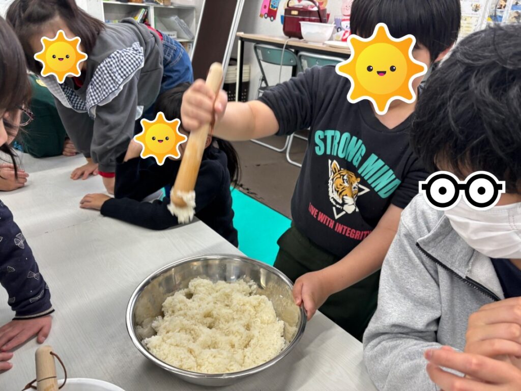 みんなでぺったんぺったんと力を込めてついたらよく伸びるお餅になりました✨