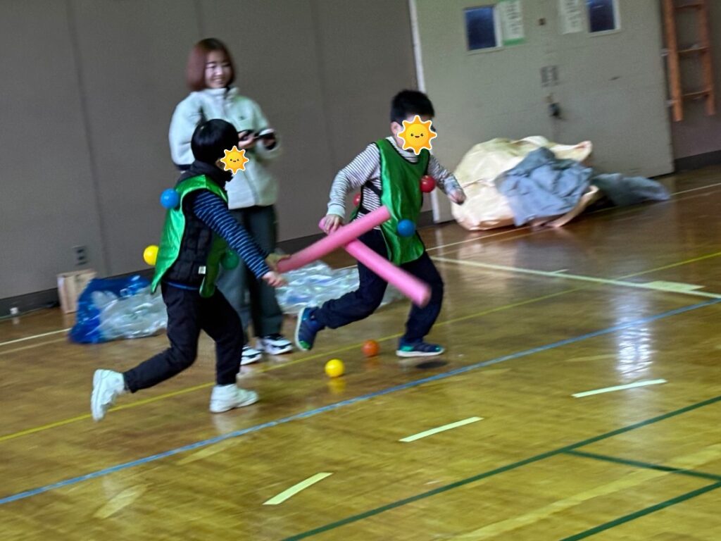 体育館を借りて*鬼ごっこ*チャンバラ*バブルボール相撲*玉入れ*玉転がしリレー*と沢山のスポーツを行いました😆