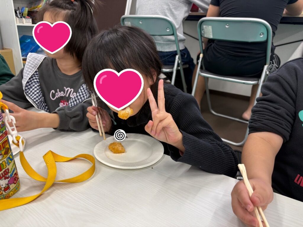 はじめは「いらな~い」と言っていた子も美味しそうに食べるお友達を見て「食べてみる…」と!