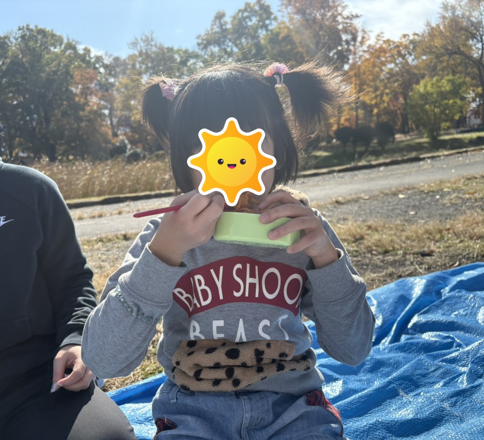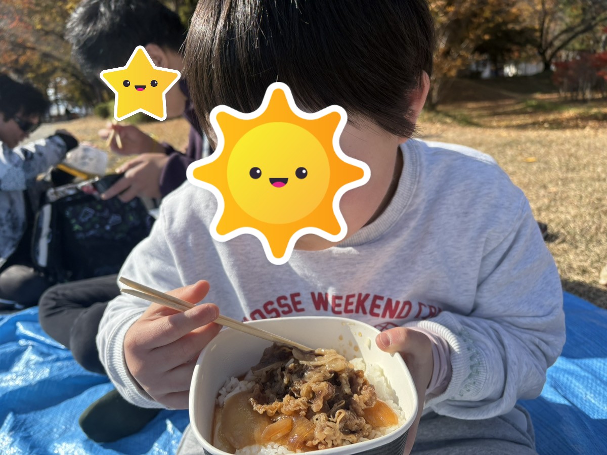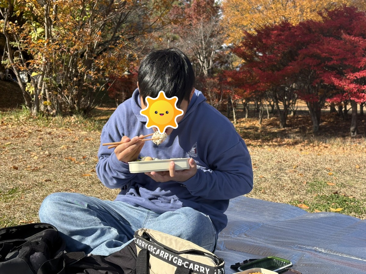 心地がいいので外で紅葉を見ながら美味しくお昼を食べました🍙🍎