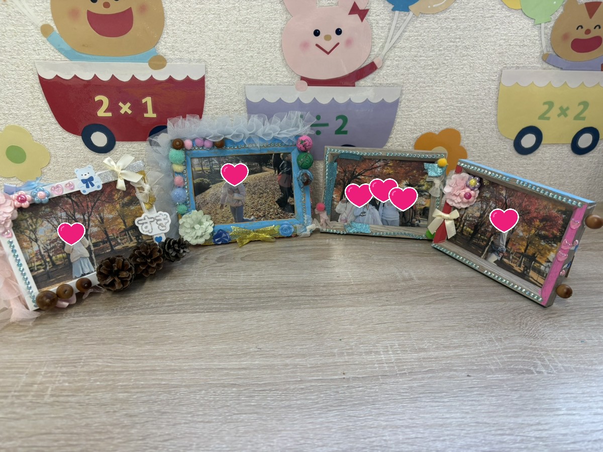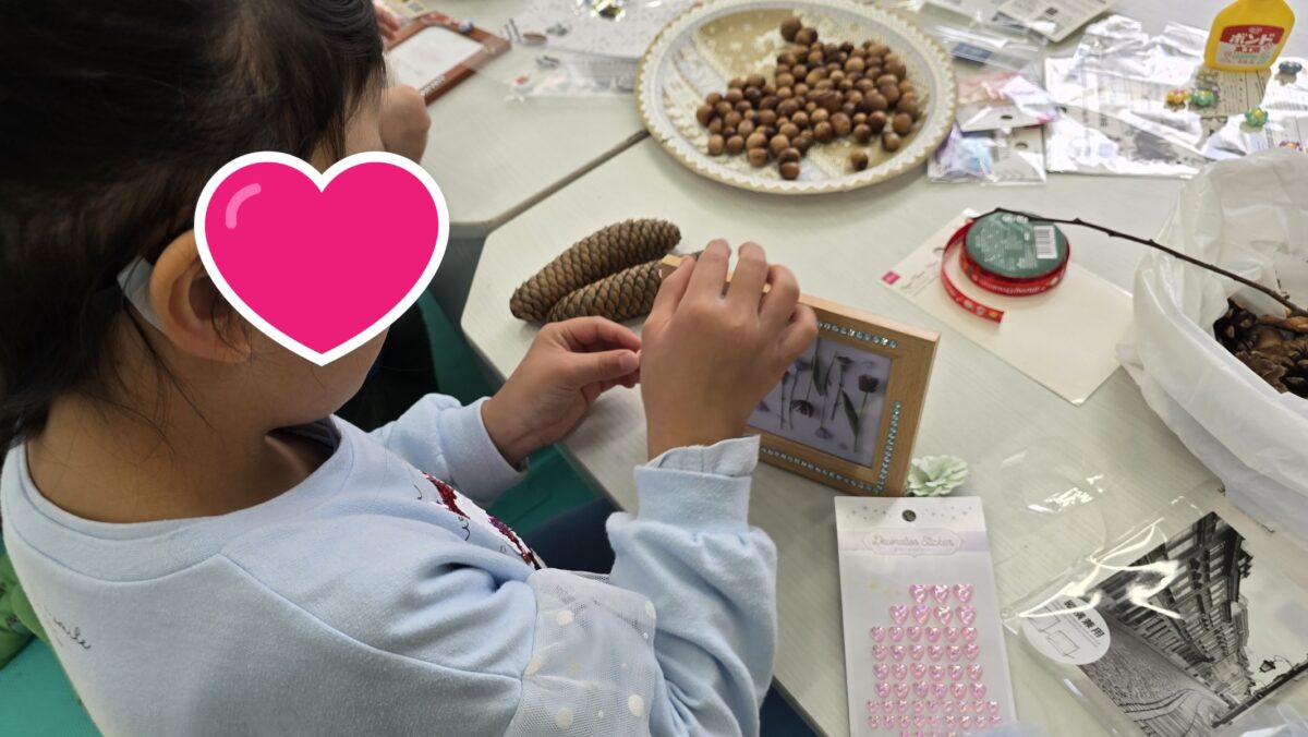 拾った自然物や購入した飾りで配置を考えながら楽しく作りました🩷