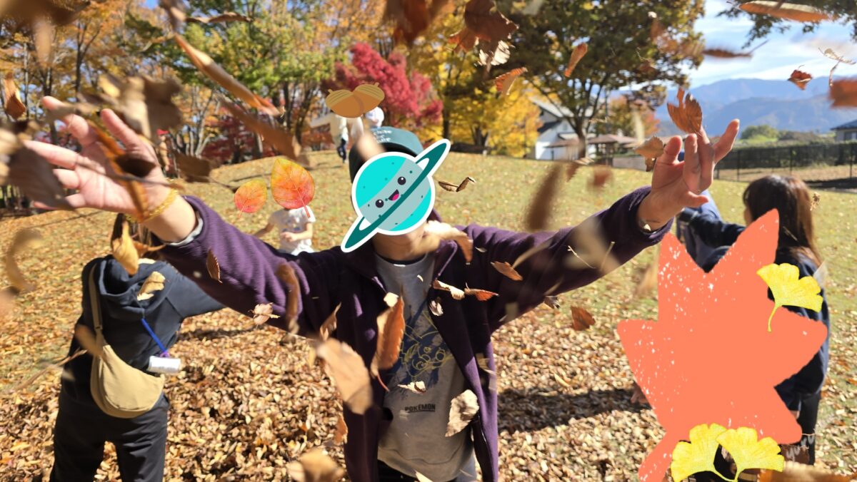 山を駆け上がったり、落ち葉シャワーを楽しんだり!