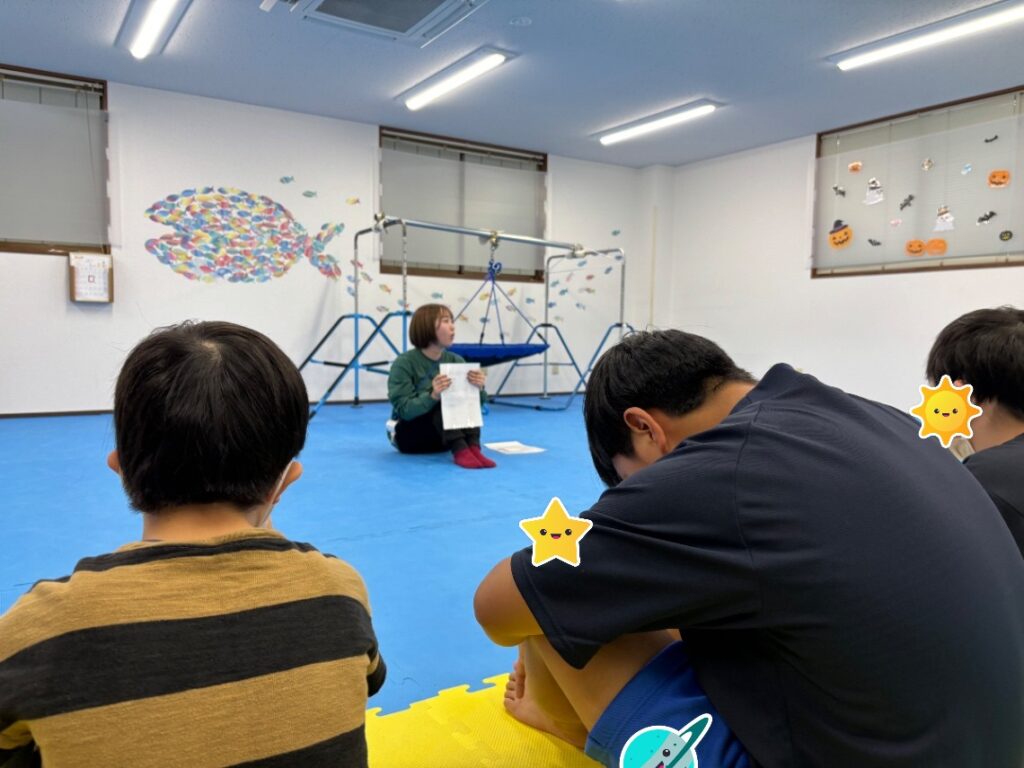 運動遊びが終わり静かな活動のご挨拶をすると、