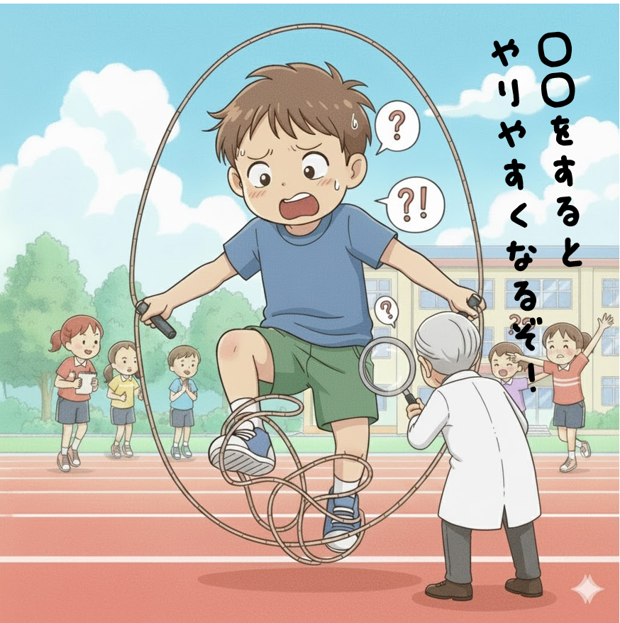 なわとびが跳べない時、「がむしゃらに練習すればいずれできるようになる」と考える方も多く見受けられます。