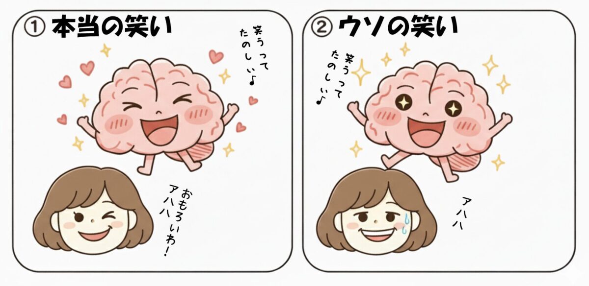 脳は、「本当の笑い」と「嘘の笑い」を区別せずに、「笑っている」と判断をしているようです!